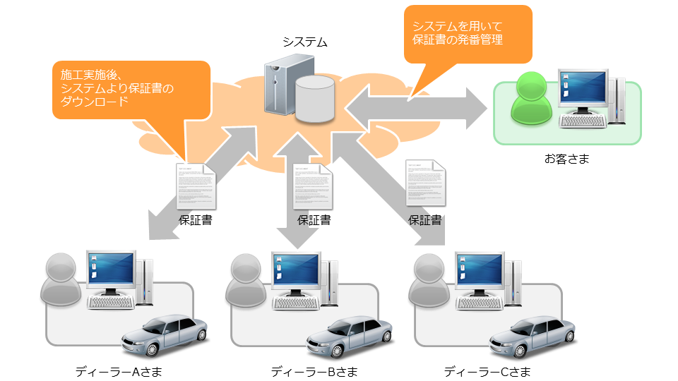 本社がメディアファイブと比較的近いこともあり、開発前や開発途中では直接顔を合わせて細かく打ち合わせをさせていただきました。 その成果もあり、以前からあった保証書発行システムより、格段に向上したシステムを創り上げることができました。 煩雑な保証書発行業務をシステム化し、同社の業務効率アップに貢献しています。 また、開発だけでなく納入後は、運用サポート契約も結んでいただきました。