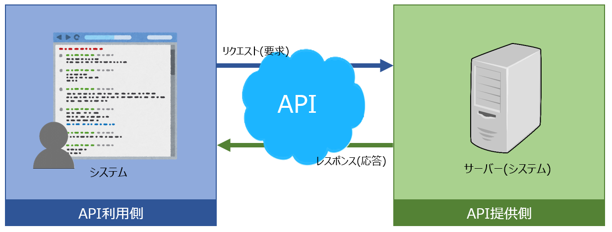 API連携はリクエスト(要求)とレスポンス(応答)で動作しており、それぞれ決められた仕様に従ってやり取りをおこなっています。